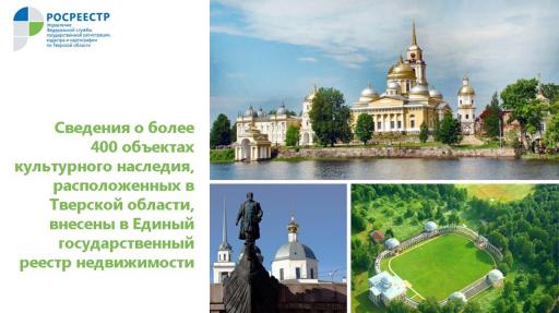 Сведения о более 400 объектах культурного наследия, расположенных в Тверской области, внесены в Единый государственный реестр недвижимости