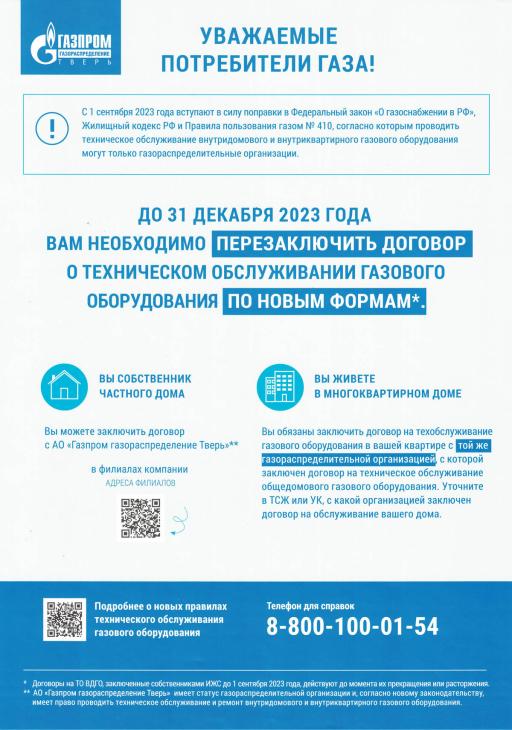 всем потребителям газа необходимо заключить/перезаключить договор на техобслуживание газового оборудования