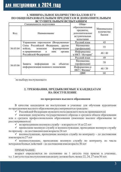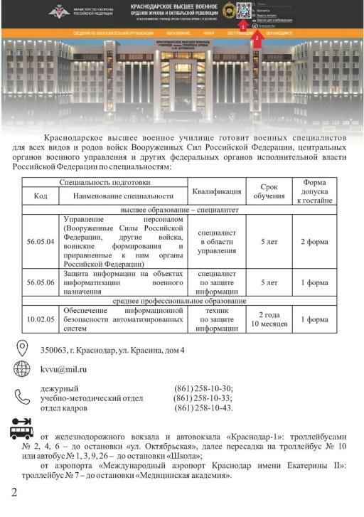 Федеральное государственное казенное военное образовательное учреждение высшего образования «Краснодарское высшее военное орденов Жукова и Октябрьской революции Краснознаменное училище имени генерала армии С.М. Штеменко» министерства обороны Российской Федерации приглашает поступающих в 2024 году.