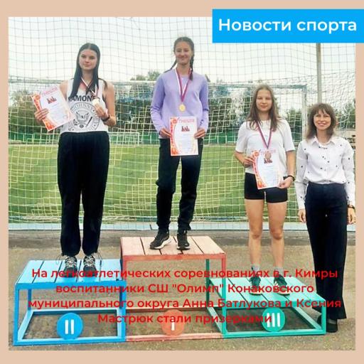 В соревнованиях приняли участие воспитанники СШ "Олимп" Конаковского муниципального округа. На дистанции 400 метров призёрами соревнований стали: Анна Батлукова - 2 место, Ксения Мастрюк -3 место.