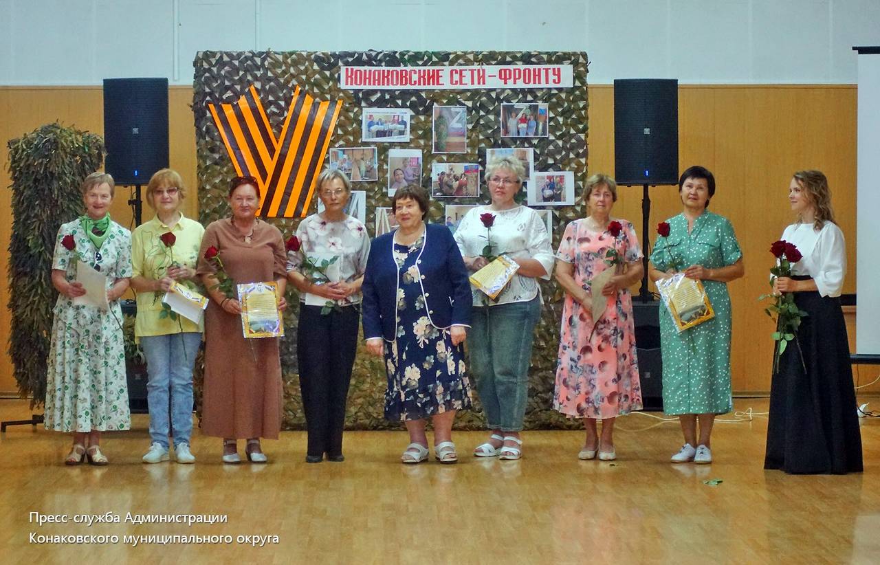 В субботу в ГДК им. Воровского прошло чествование самоотверженных жительниц Конаковского округа, которые каждый день плетут маскировочные сети для наших бойцов в зоне СВО. Такая помощь из тыла жизненно необходима солдатам. Ради приближения победы, плетуньи трудятся изо всех сил. И лишь ненадолго отложили они свои заботы, чтобы немного отдохнуть, вспомнить вместе пройденный путь. Руководит группой Христина Зеленова.