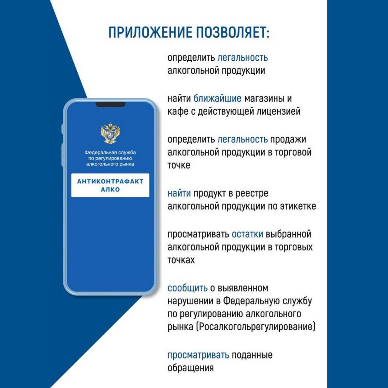 Мобильное приложение «АнтиконтрафактАлко» позволяет определить легальность алкогольной продукции по данным из ЕГАИС. Алкогольная продукция обязательно имеет на бутылке акцизную марку, через приложение пользователь может проверить подлинный напиток перед ним или контрафакт.