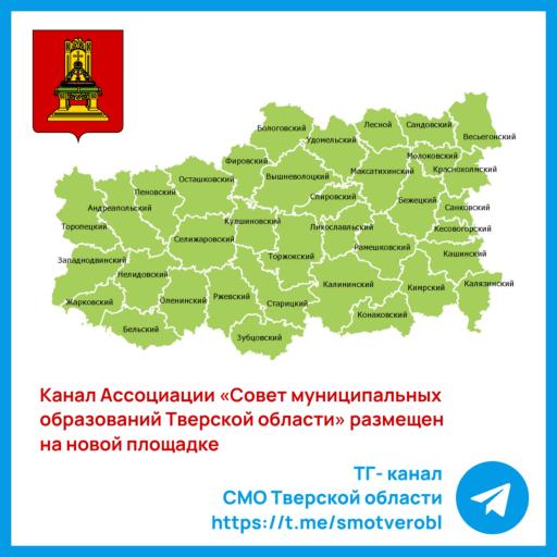 В соответствии с рекомендациями Всероссийской ассоциации развития местного самоуправления (ВАРМСУ) и по техническим причинам телеграмм – канал Ассоциации «Совет муниципальных образований Тверской области» размещен на новой площадке – ТГ-канал СМО Тверской области.