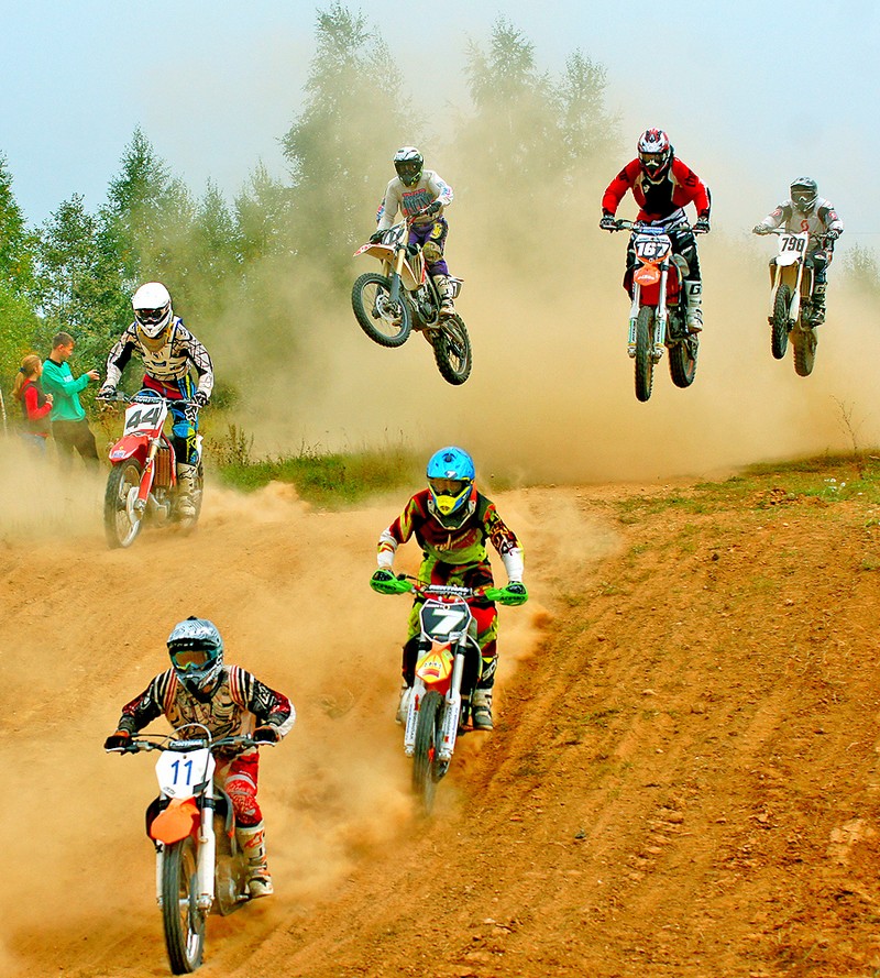 В мотокроссе приняли участие гонщики из Твери и Москвы, Дубны и Павлова Посада, Торжка, Рыбинска, Ярославля, Московской области, Смоленска, Костромы, Калуги…в общем – весь центр России был у нас в гостях. Поразил своим щеголеватым стилем гонки многократный (не смотря на свой 16-летний возраст) чемпион страны Артем Назаров из Павлова Посада. Разумеется, он пришел первым в обоих заездах в своем классе 125 кубов, его отец, стартовавший в ветеранском классе также в оба заезда пришел вторым. Но как шел по трассе Назаров-младший! В ослепительно светлом комбезе, с экшн-камерой на шлеме, он после каждого трамплина летел плашмя, почти параллельно земле, казалось - что разобьется, но каждый раз, его мотоцикл четко вставал на колеса! Это уже была не просто гонка – это было шоу, и шоу высокого класса!