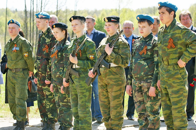 Траурный митинг завершился возложением цветов к мемориалу. После этого воспитанники военно-патриотического центра «Звезда» показали собравшимся собственную реконструкцию боя у деревни Рябинки.