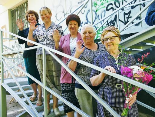 Члены общества инвалидов остались чрезвычайно довольны и благодарны за такую помощь. Когда наш корреспондент пришел снимать новую лестницу, женщины как раз отмечали юбилей одной из активисток общественной организации инвалидов Т.И.Васильевой (на фото она с цветами). Такой вот подарок сделали глава района и «Энергостальконструкция» людям.
