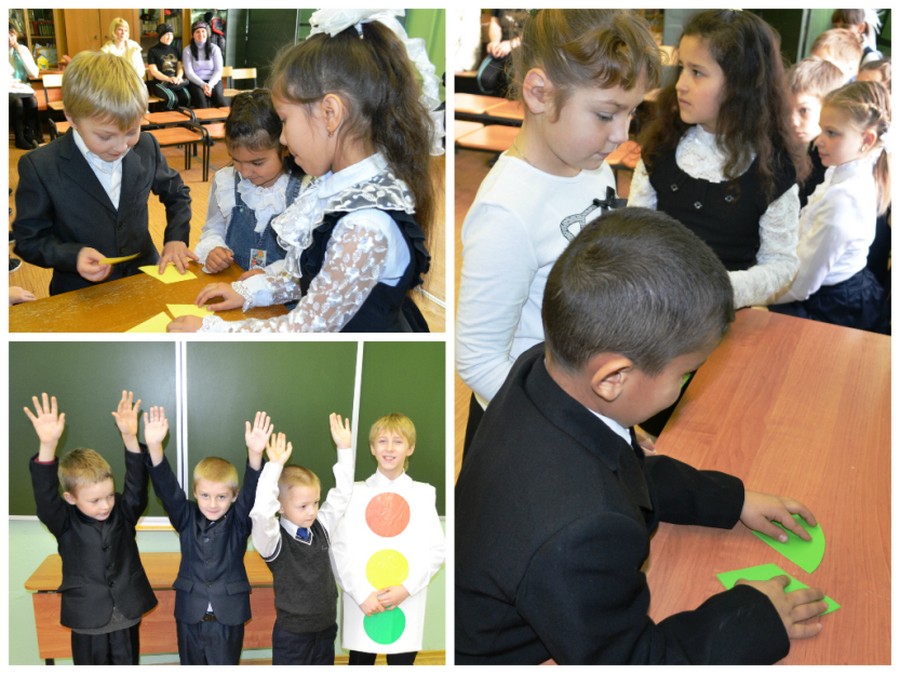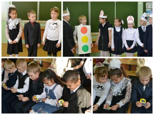 Со звонком на третий урок в класс вошли Дорожные знаки. Каждый из них представился - рассказал, как называется и что обозначает. Затем детям предложили найти дорожные знаки по названию и показать. И тут первоклассники получили твердую "5".