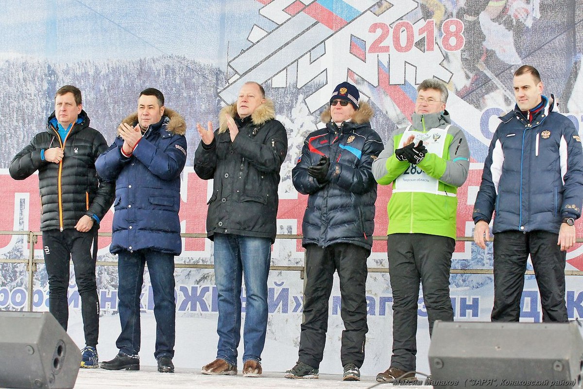 Старт массовой гонке, выстрелив из спортивного пистолета, дал губернатор Тверской области Игорь Руденя. Перед этим со сцены глава региона поздравил всех с этим грандиозным спортивным праздником: